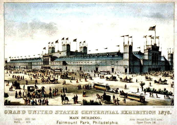 En 1876, une dizaine d’années seulement se sont écoulées depuis le gigantesque carnage que fut la guerre de Sécession (1861-1865) avec ses 620.000 morts. Cette fois, la commémoration, encore plus grandiose, prend la forme de la première Exposition universelle organisée sur le sol américain. Quelque 10 millions de visiteurs, dans un pays d’environ 45 millions d’habitants, se rendent au Fairmount Park, à Philadelphie. Sur les bords de la Schuylkill River ont été construits les pavillons de 37 pays. Certains États du Sud ne sont pas représentés. Outre la célébration d’inventions comme le téléphone d’Alexander Graham Bell ou le télégraphe de Thomas Edison, le centenaire de la Déclaration d’indépendance promeut les contributions des femmes aux arts, sciences, et à l’industrie dans un pavillon qui leur est consacré. Le 4 juillet, la militante féministe Susan B. Anthony présente une Déclaration des droits des femmes. Elle entend ainsi protester contre l’exclusion politique des femmes, contraire aux idéaux fondateurs des États-Unis.